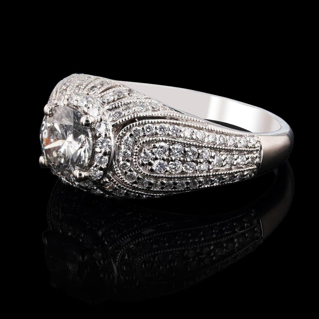 One polished, stamped, and tested platinum ring with a bright finish. The ring is mounted with 1 genuine diamond center stone weighing approximately 0.91 carat, and 124 genuine round diamonds weighing approximately 0.60 carats. This item weighs 7.0 grams, condition is new, excellent workmanship. MAIN GEMSTONE Identity: Natural Diamond Shape: Round Cutting Style: Brilliant Cut Average Diameter: 6.0mm Depth: 3.7mm Weight: 0.91 carat Color Grade: G Clarity Grade: I2 Polish: Excellent Symmetry: Very Good Refractive Index: 2.417 Hardness: 10 ADJACENT GEMSTONES ON RING Identity: Natural Diamond Shape: Round Cutting Style: Brilliant Cut Quantity: 124 Diamonds Measurements: 0.9mm to 1.1mm Total Weight: 0.60 carats Color Grade: F - G Clarity Grade: VS2 to SI1 Refractive Index: 2.418 Hardness: 10 CENTER DIAMOND WEIGHT: 0.91 ctw TOTAL DIAMOND WEIGHT: 1.51 ctw WEIGHT OF ITEM: 7.0 grams METAL: Platinum