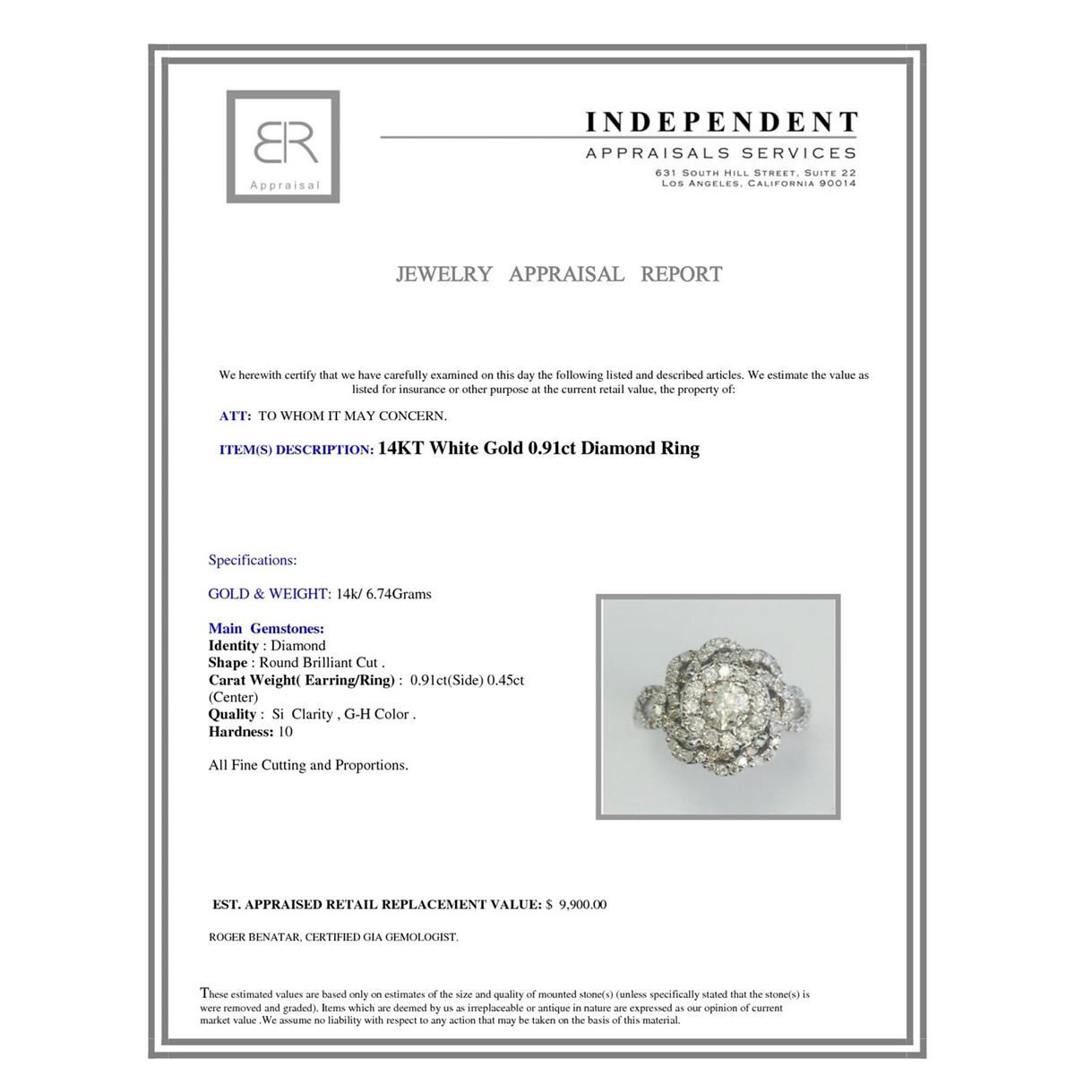 14K W/G DIAMOND RING :6.74GRAM /DIAMOND :0.45CT CENTER/ DIA :0.91CT SIDE/#GVR1330