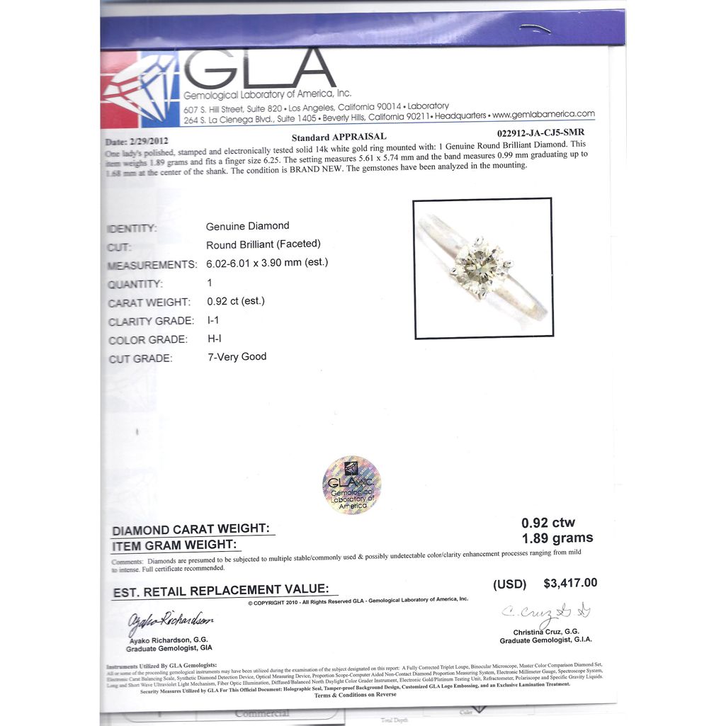0.92 CTW 14K GOLD DIAMOND RING ROUND H-I/I1 **|**|** 0.92 CTW 14K GOLD DIAMOND RING ROUND H-I/I1 ; MSRP: $3417