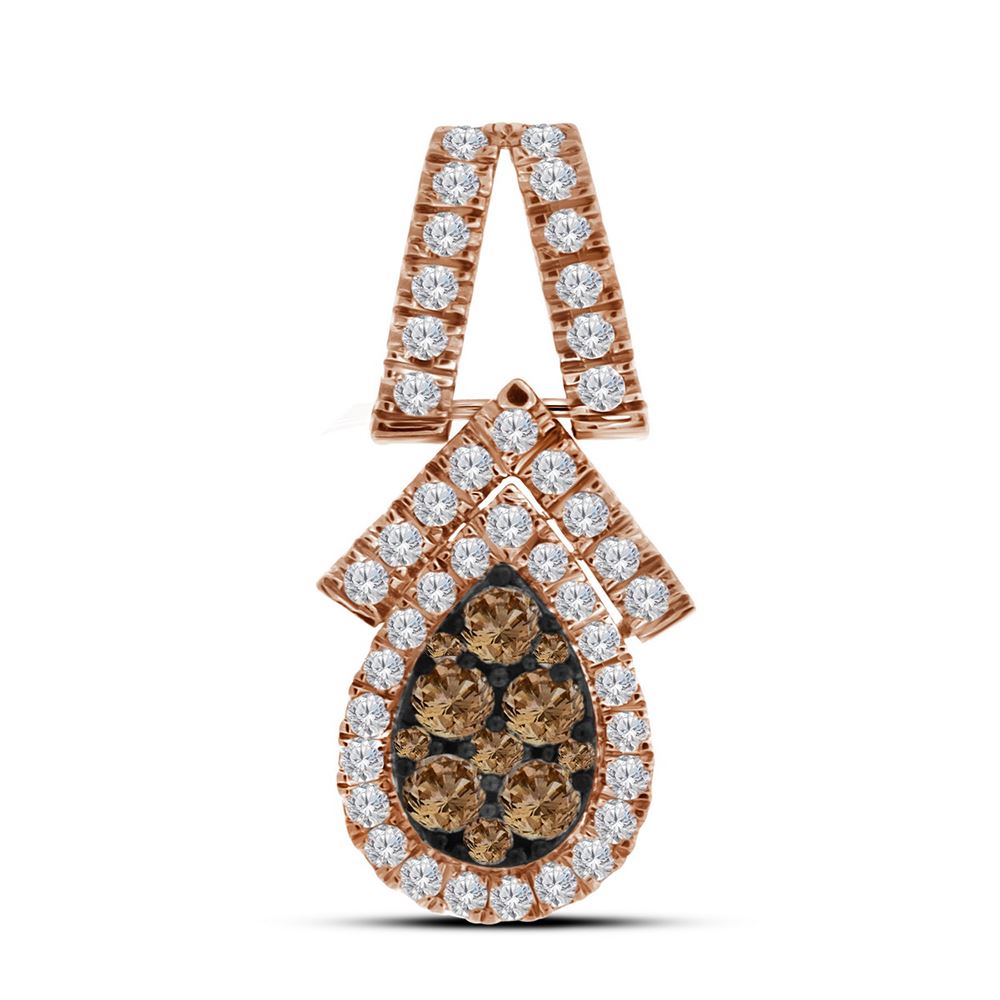 REF-75M2H- SKU: GD114654 ---- 0.92 CTW Cognac-brown Color Diamond Teardrop Cluster Pendant 10KT Rose Gold