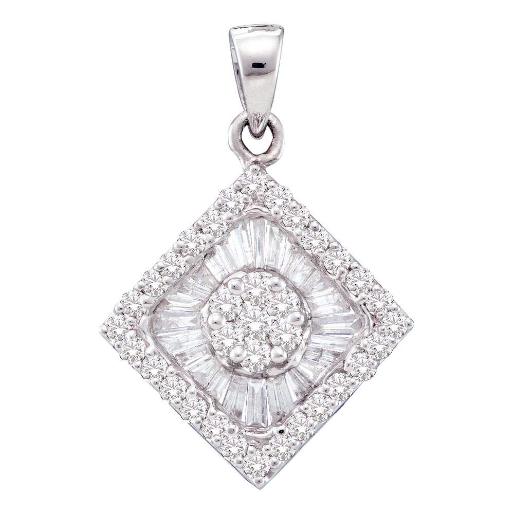 REF-67F4N- SKU: GD54727 ---- 0.92 CTW Diamond Diagonal Square Cluster Pendant 14KT White Gold