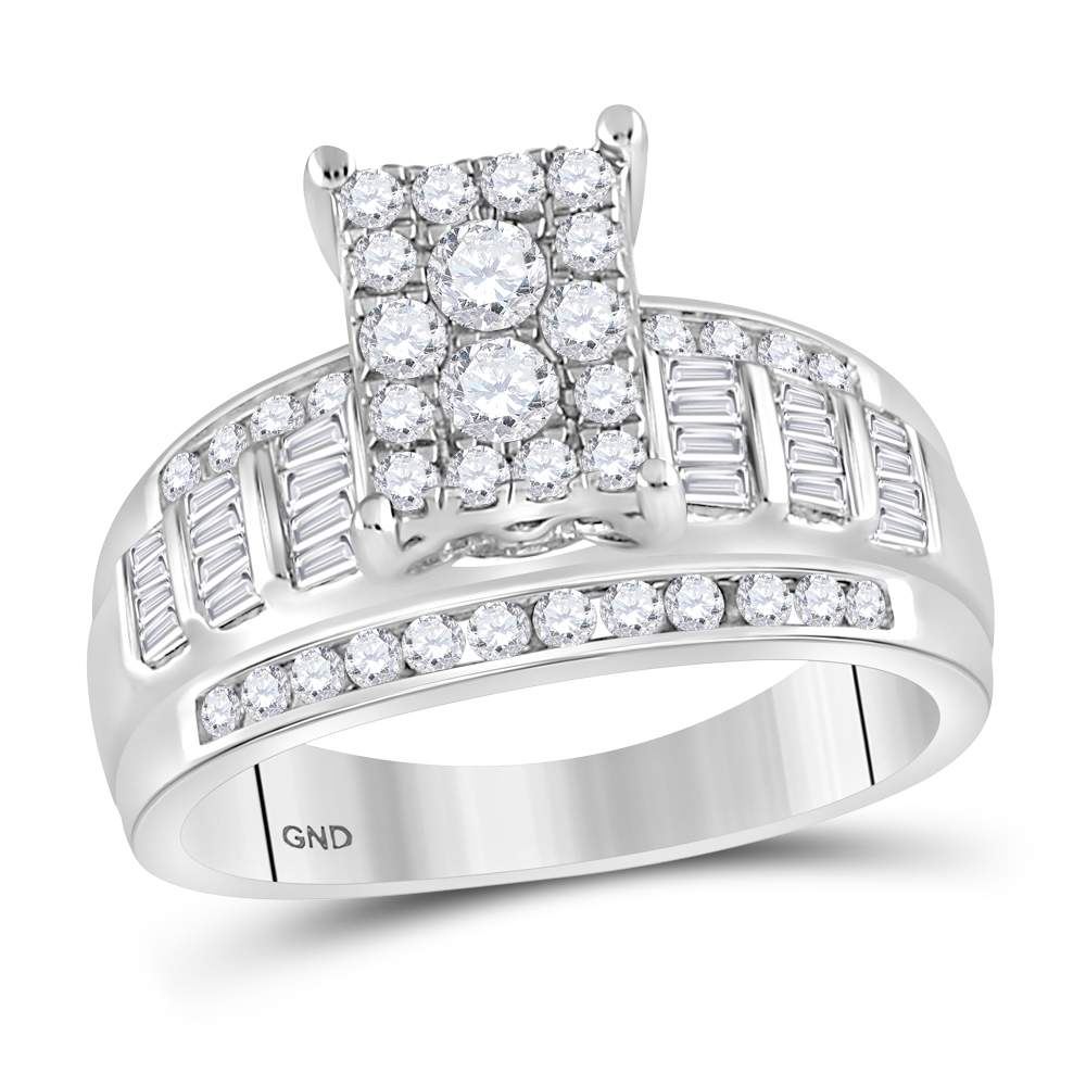 REF-67N4F- SKU: GD110196 ---- 0.92 CTW Diamond Rectangle Cluster Bridal Engagement Ring 10KT White Gold