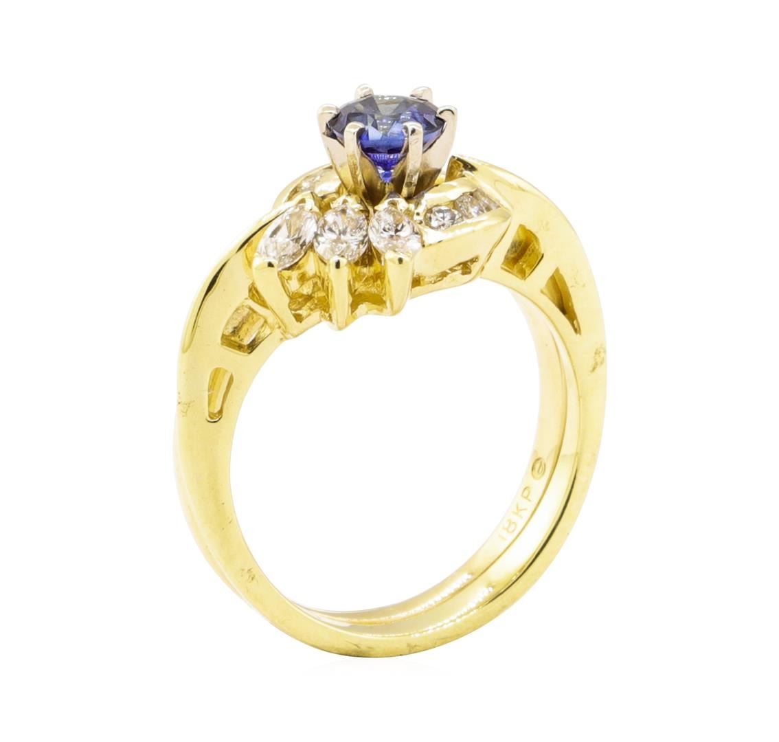 One ring featuring: 18KT yellow gold weighing 5.8 grams containing one blue sapphire weighing 0.52ct and diamonds weighing 0.40 ctw.