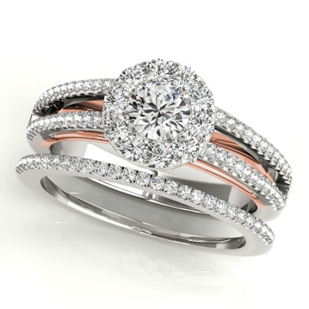 REF-91N4F - SKU: 31029 ---- 0.92 ctw Certified VS/SI Diamond 2pc Set Solitaire Halo 14k White & Rose Gold