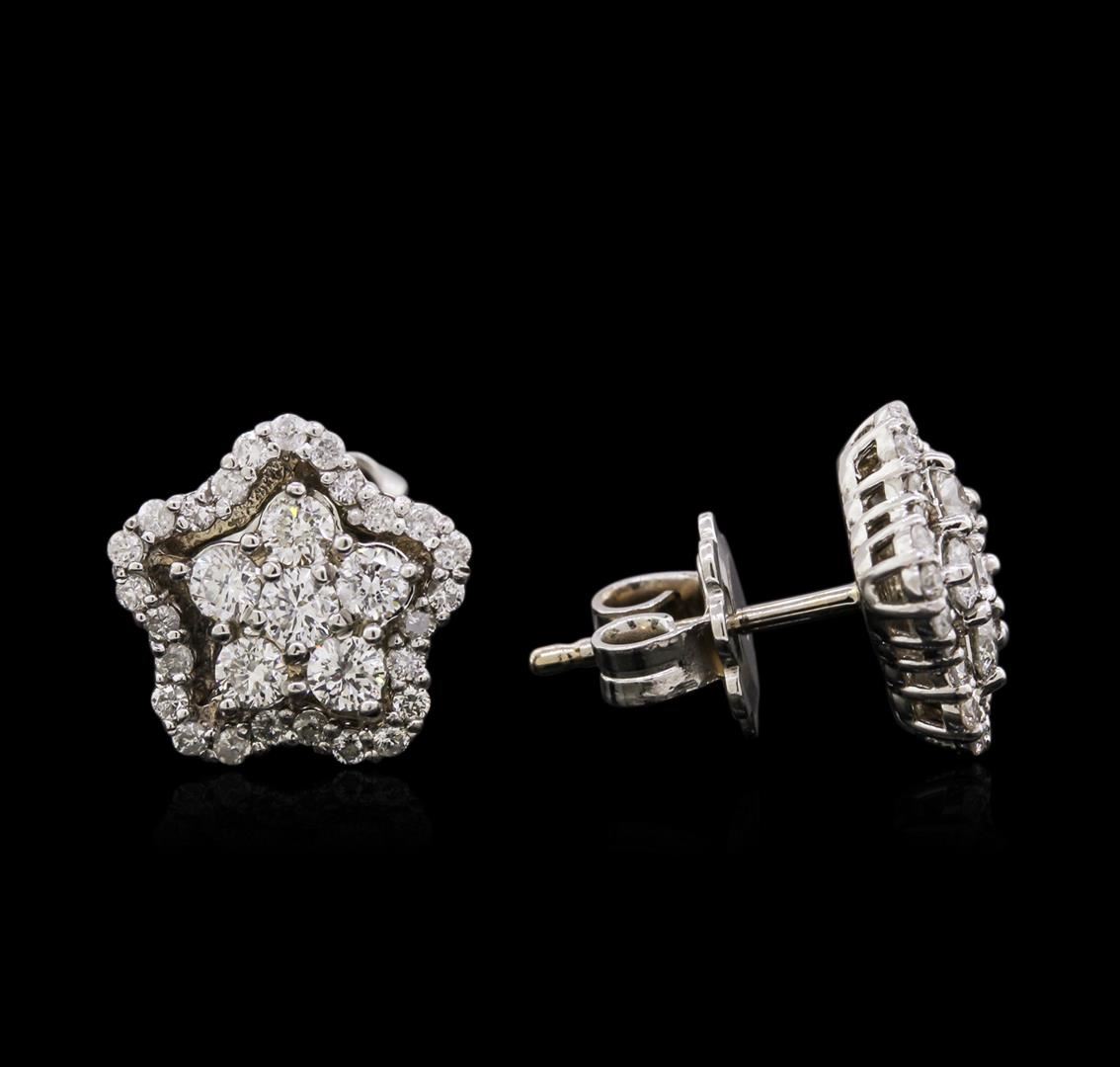 One pair of earrings featuring: 14KT white gold weighing 3.27 grams containing 62 diamonds with a total weight of 0.92ct.