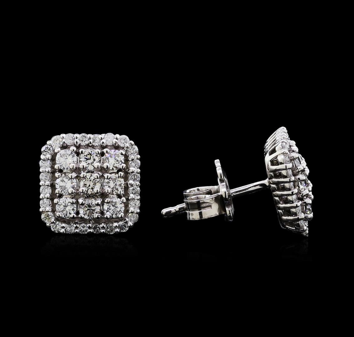 One pair of earrings featuring: 14KT white gold weighing 3.50 grams containing diamonds with a total weight of 0.92ct.