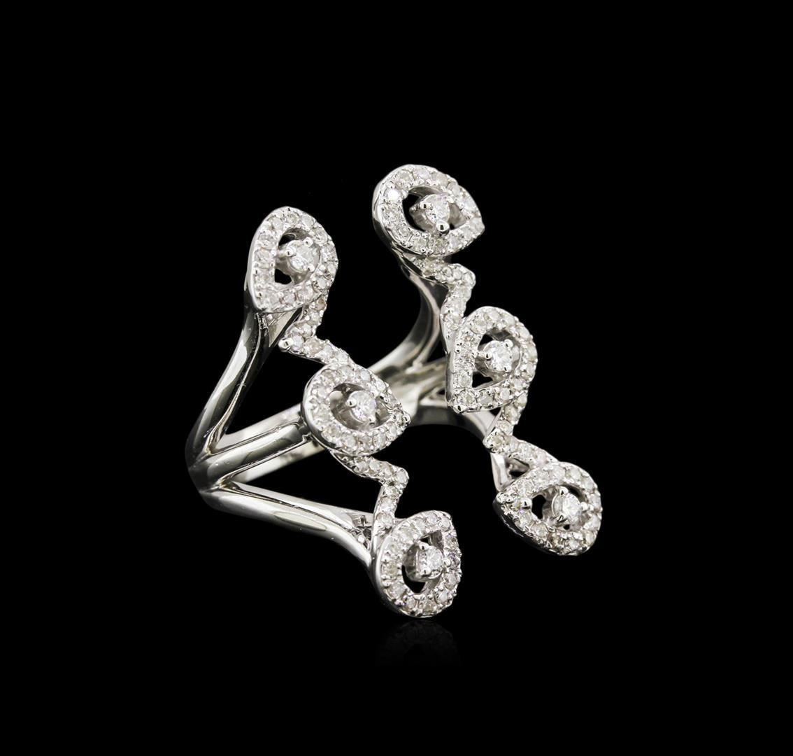 One electronically tested 14KT white gold lady's cast fashion ring with a split shank with a bright polish finish. The featured lady's ring is a not connected at the top of the ring, and a shank measuring 3.36 millimeters wide. Identified with markings of "K14". Condition is new, good workmanship. Containing: Six prong set round brilliant cut diamonds, measuring 2.10 - 2.05 x 1.27mm (depth est.) approximate total weight of 6 Stones = 0.20 ct. Graded in the setting. Clarity: SI-2 to I-1. Color: H - I. Cut Good One Hundred Six prong set round brilliant cut diamonds, measuring 1.25 - 1.20 x 0.74mm (depth est.) approximate total weight of 106 Stones = 0.72ct. Graded in the setting. Clarity: SI-2 to I-2. Color: H - I. Cut Good. Total Weight of Diamonds 0.92ct. Total Weight of Ring 8.20gm. GAS Appraised.