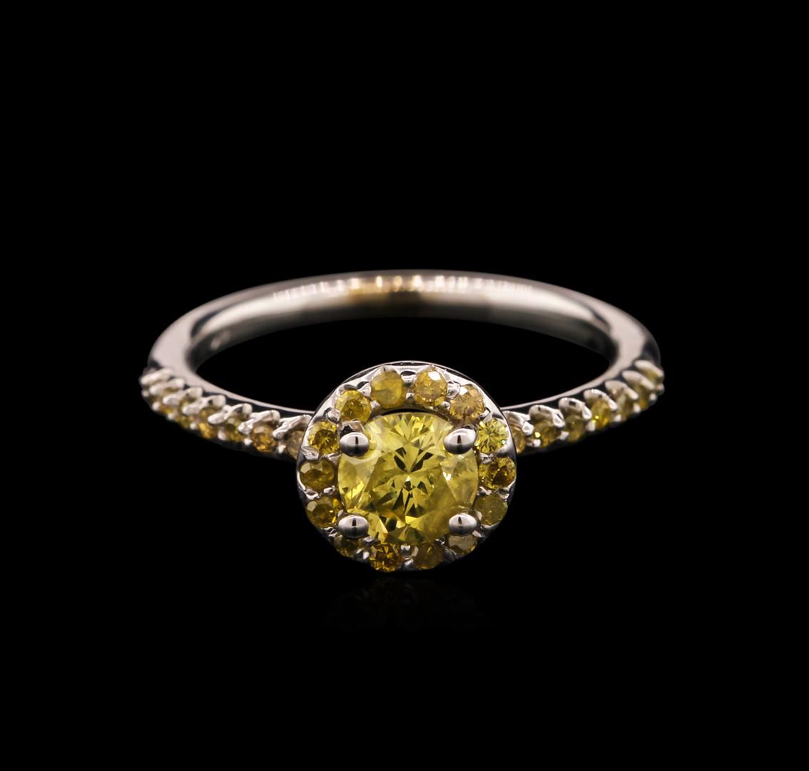 One ring featuring: 14KT white gold weighing 2.78 grams containing one yellow diamond center stone with a total weight of 0.63ct and 30 yellow side diamonds with a total weight of 0.29ct.