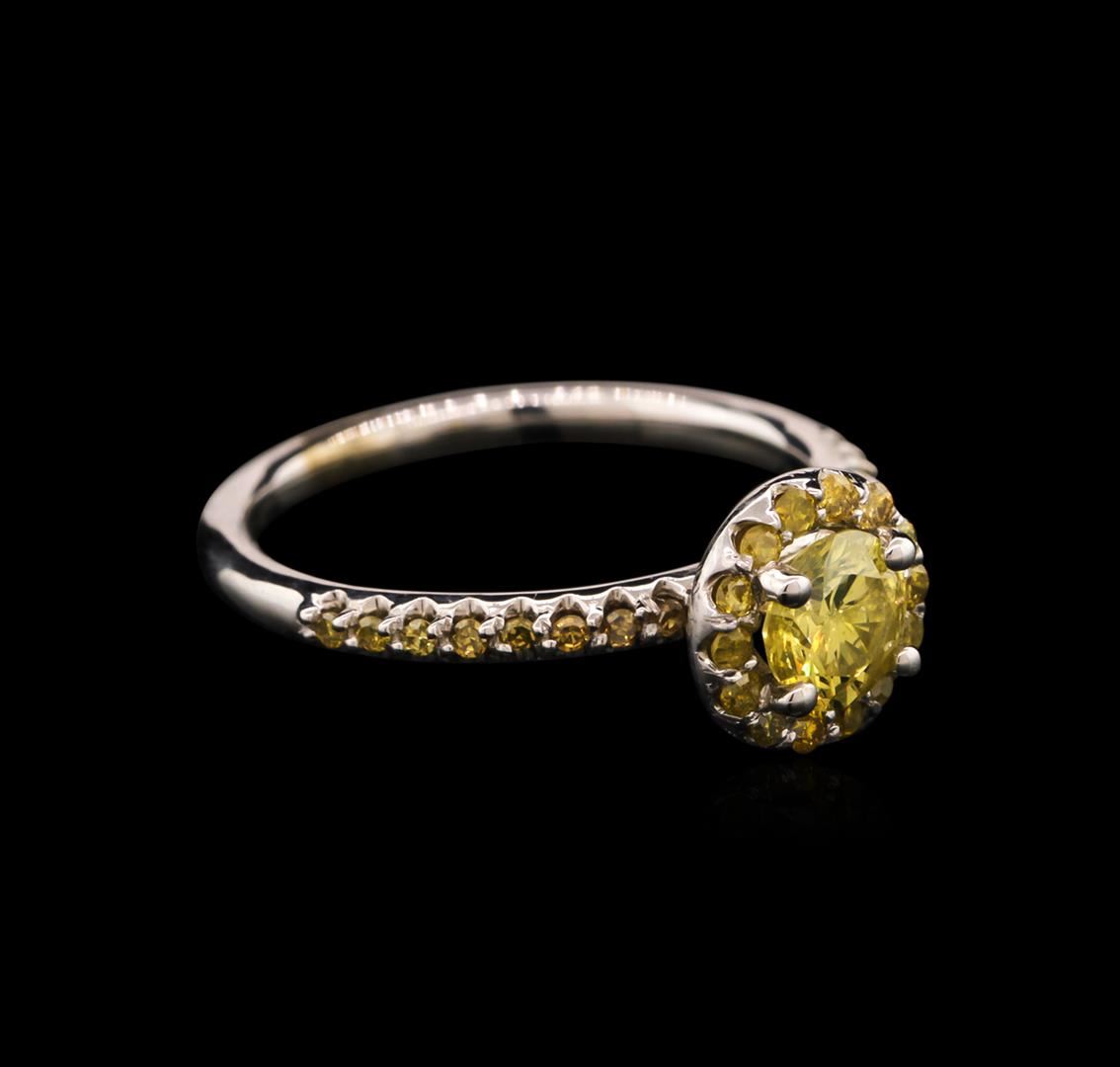 One ring featuring: 14KT white gold weighing 2.78 grams containing one yellow diamond center stone with a total weight of 0.63ct and 30 yellow side diamonds with a total weight of 0.29ct.