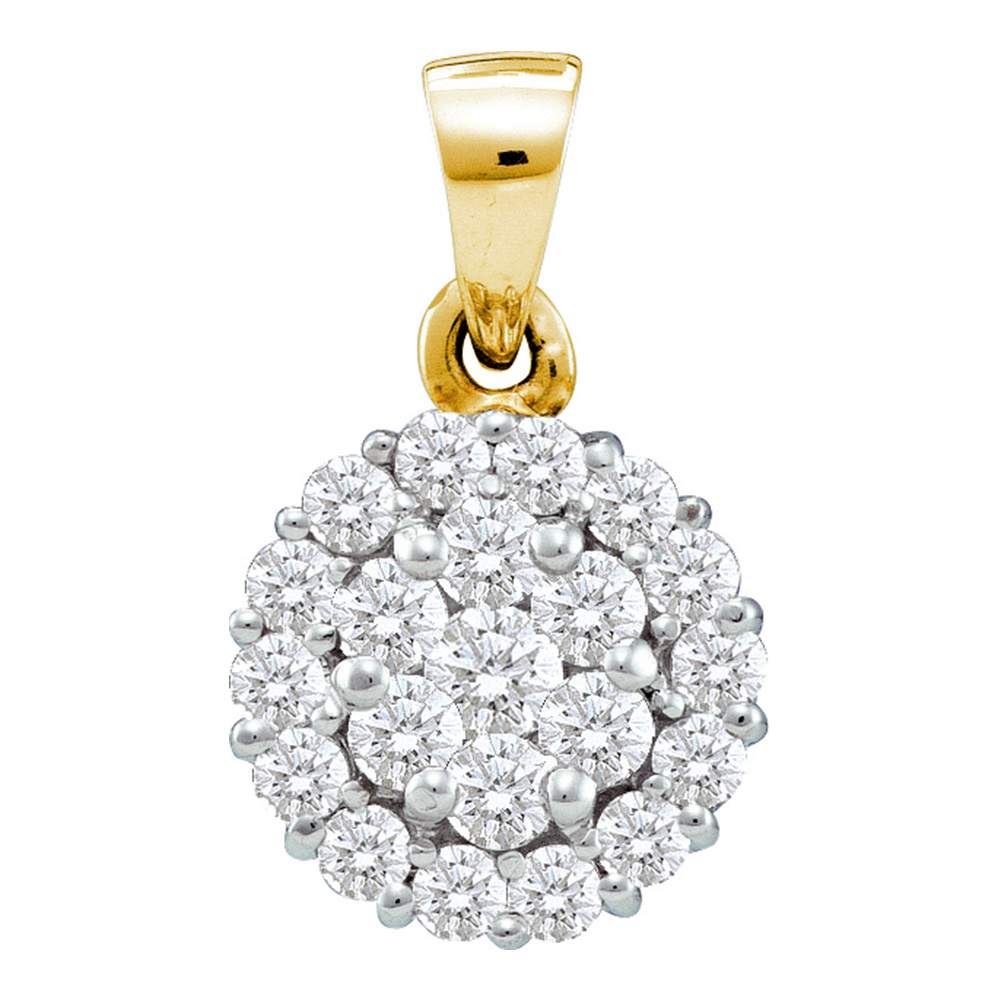 REF-75F2N- SKU: GD46667 ---- 0.93 CTW Diamond Flower Cluster Pendant 14KT Yellow Gold