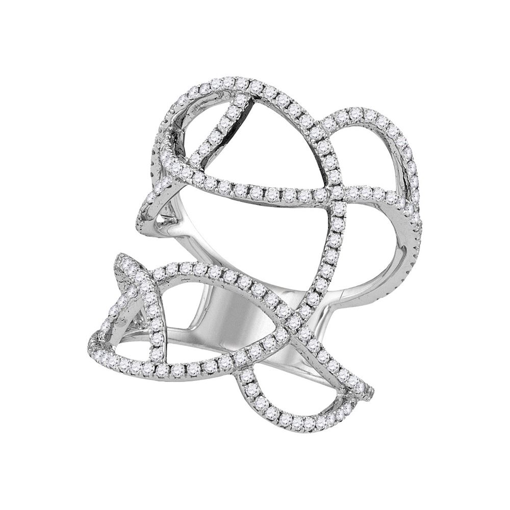 REF-199M4H- SKU: GD103266 ---- 0.93 CTW Diamond Openwork Abstract Strand Knuckle Ring 18KT White Gold
