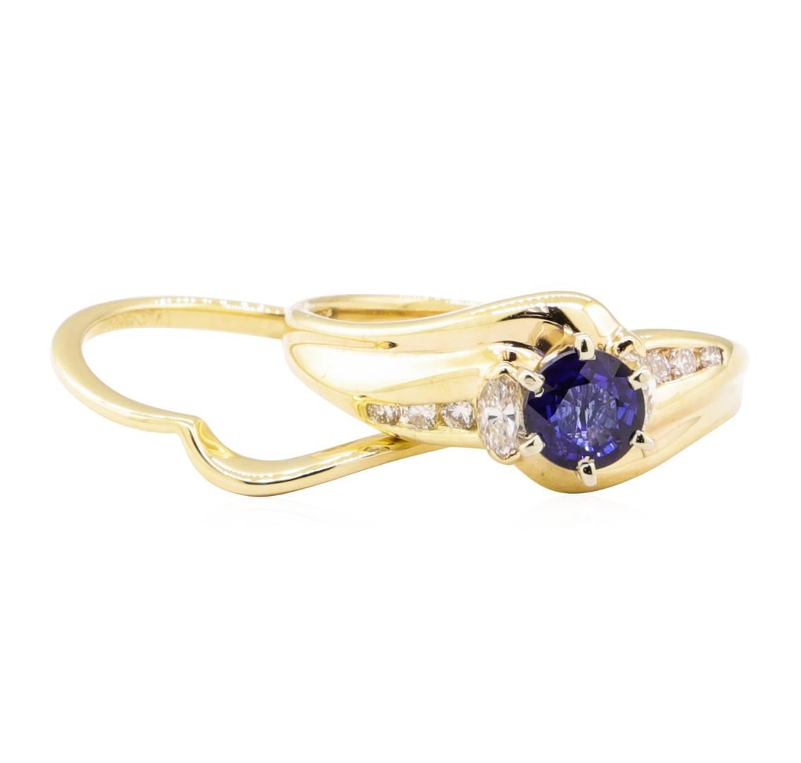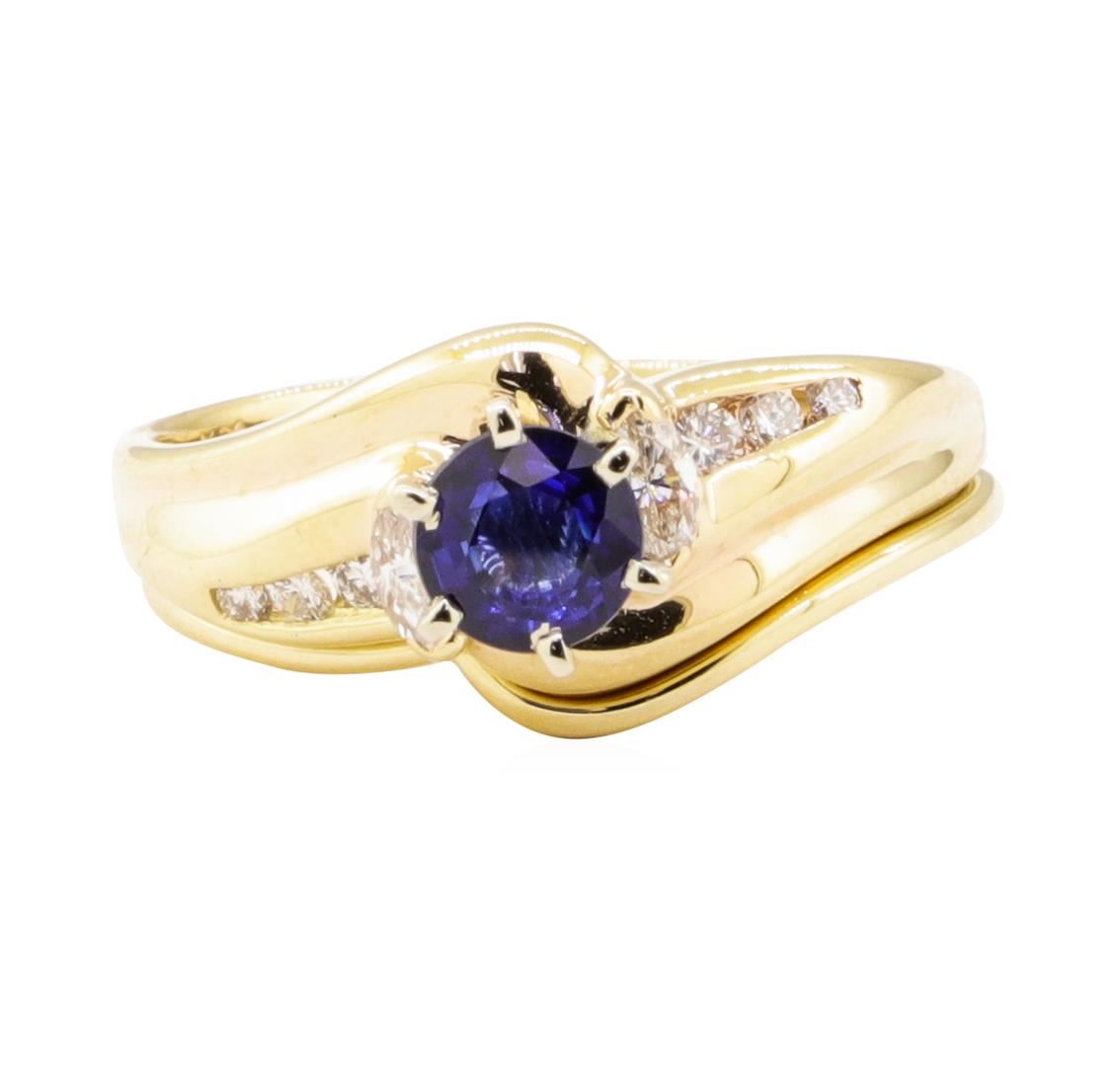 One ring set featuring: 14KT yellow gold weighing 4.0 grams containing one blue sapphire weighing 0.58ctw and diamonds weighing 0.35ctw.