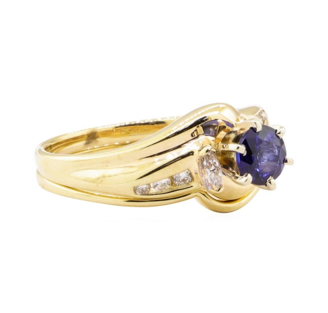 One ring set featuring: 14KT yellow gold weighing 4.0 grams containing one blue sapphire weighing 0.58ctw and diamonds weighing 0.35ctw.