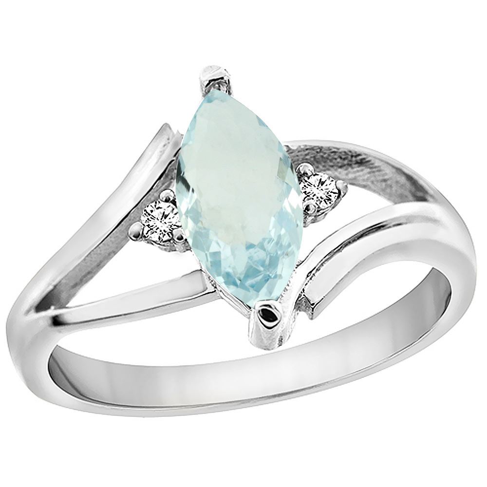 REF-35N6Y - SKU: SC-CW412244 ---- 0.94 CTW Aquamarine & Diamond Ring 14K White Gold