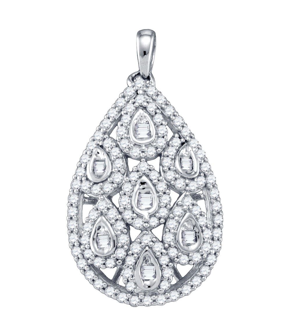 REF-89M9A ---- 0.94 CTW Natural Diamond Teardrop Cluster Pendant 10K White Gold - SKU: GD72358