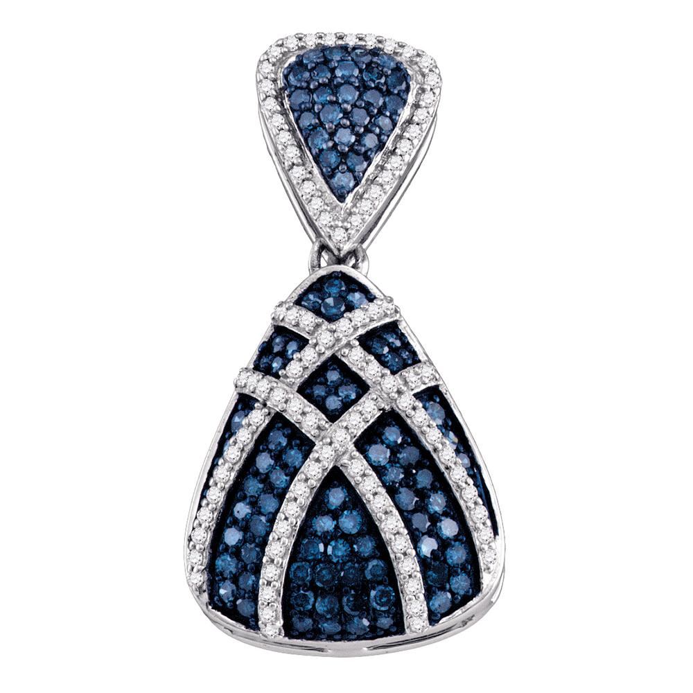 REF-44H9M- SKU: GD72467 ---- 0.95 CTW Blue Color Diamond Teardrop Cluster Pendant 10KT White Gold