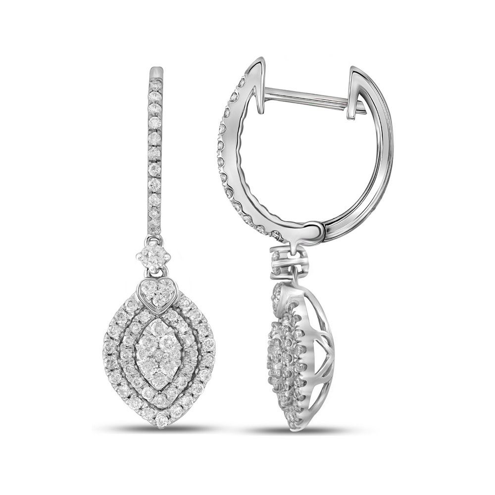 REF-97W4K- SKU: GD109466 ---- 0.95 CTW Diamond Double Oval Dangle Earrings 14KT White Gold