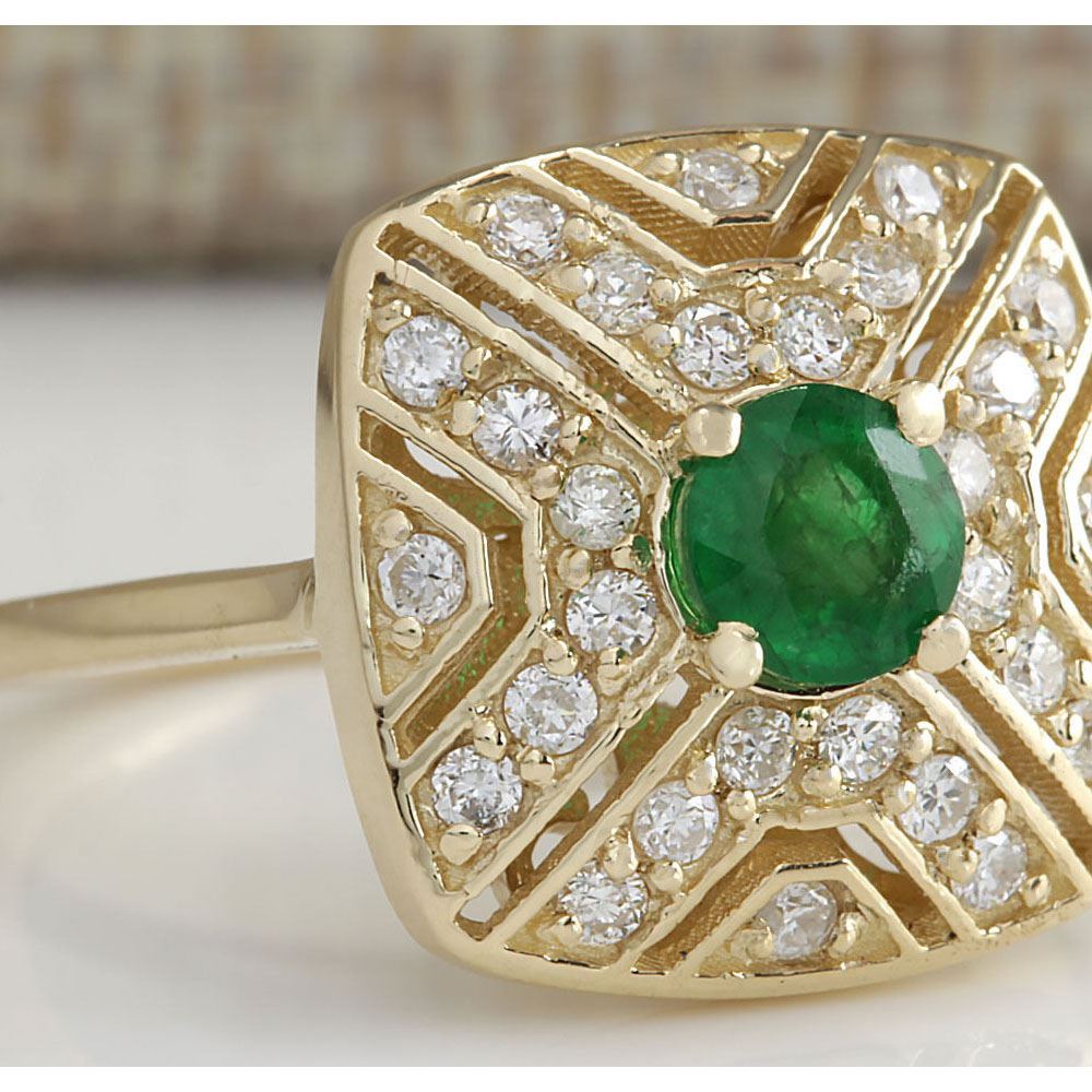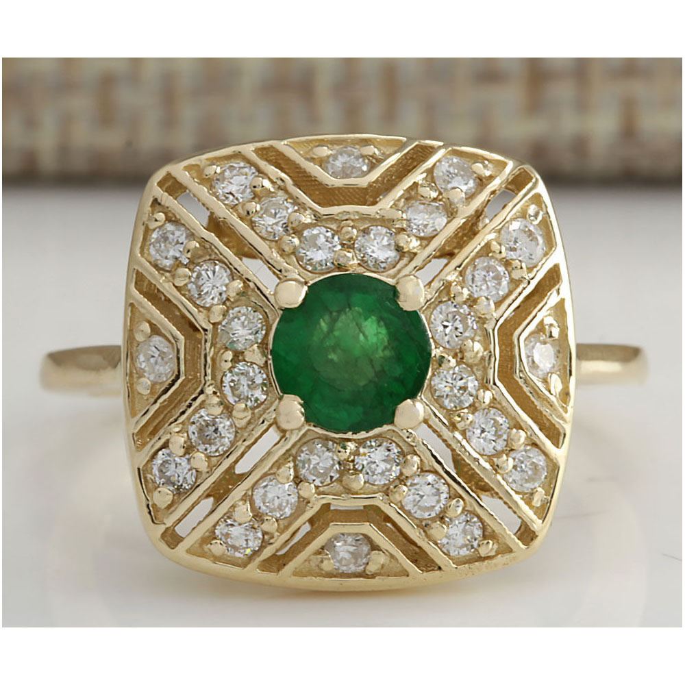 .95 CTW Natural Emerald And Diamond Ring 18K Solid Yellow Gold