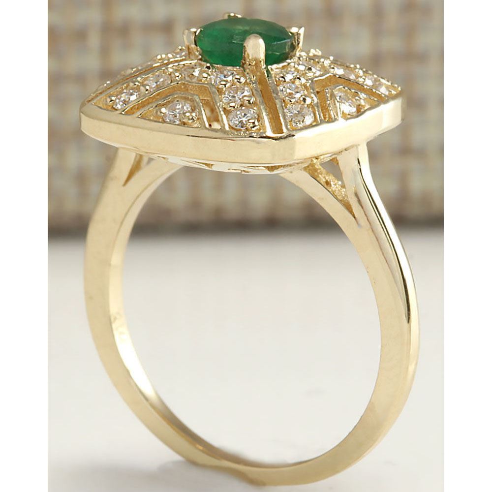 .95 CTW Natural Emerald And Diamond Ring 18K Solid Yellow Gold