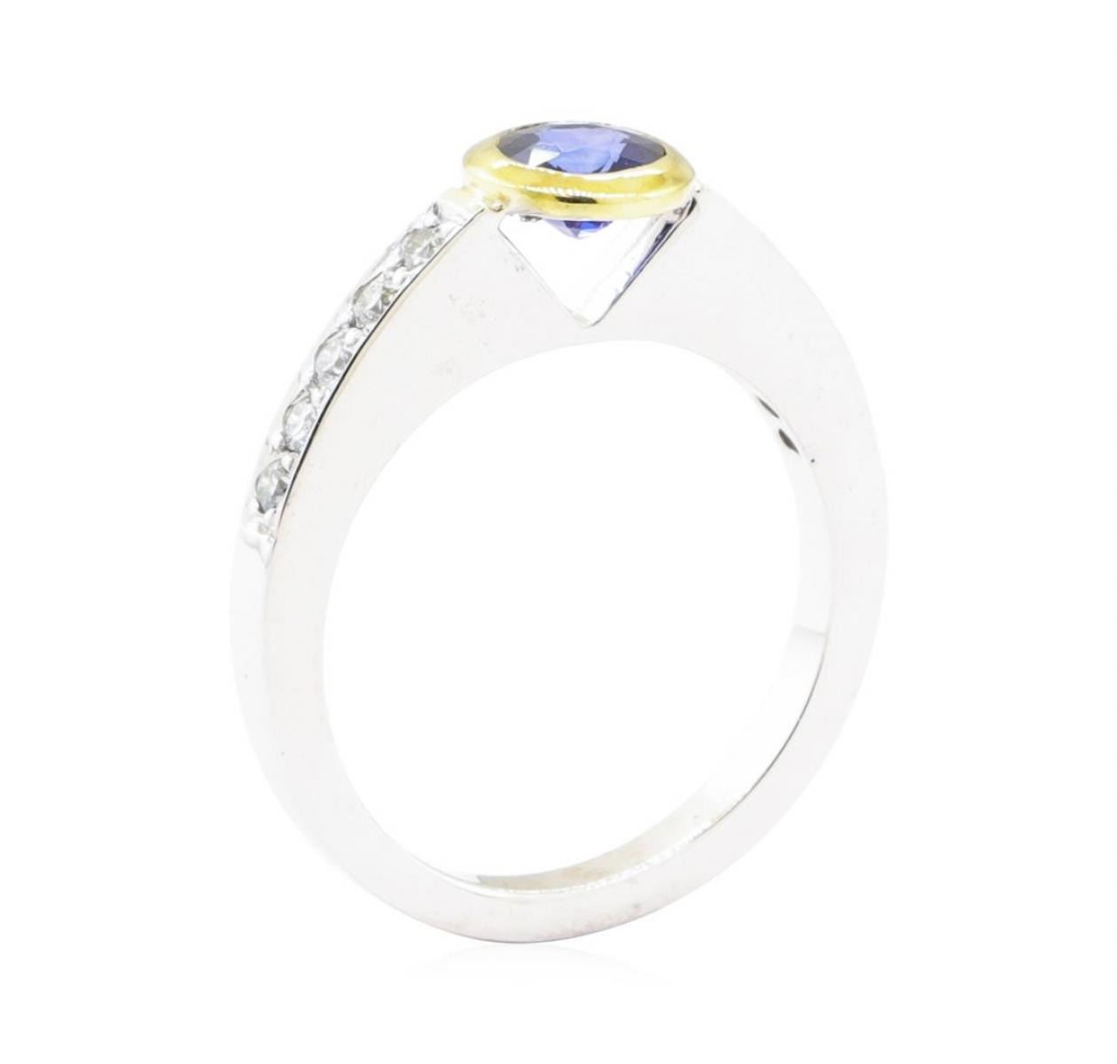 One ring featuring: 18KT white and yellow gold weighing 4.7 grams containing one sapphire weighing 0.65ct and diamonds weighing 0.30ctw.