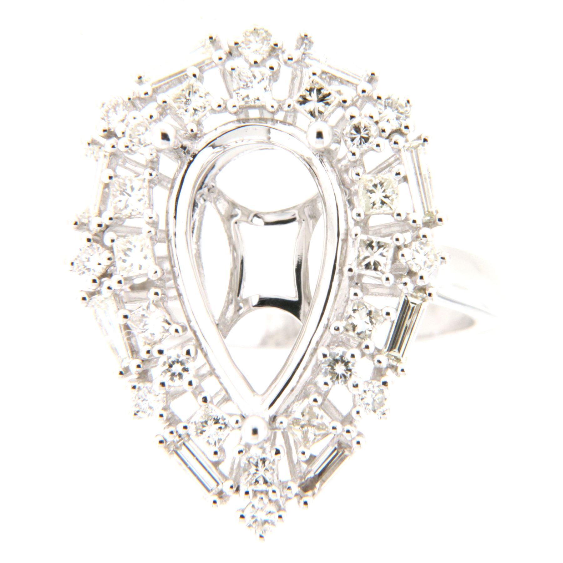 REF-110K2W - JF414479 ---- 0.96 CTW White Round Diamond & Baguette Semi Mount Ring 14K White Gold