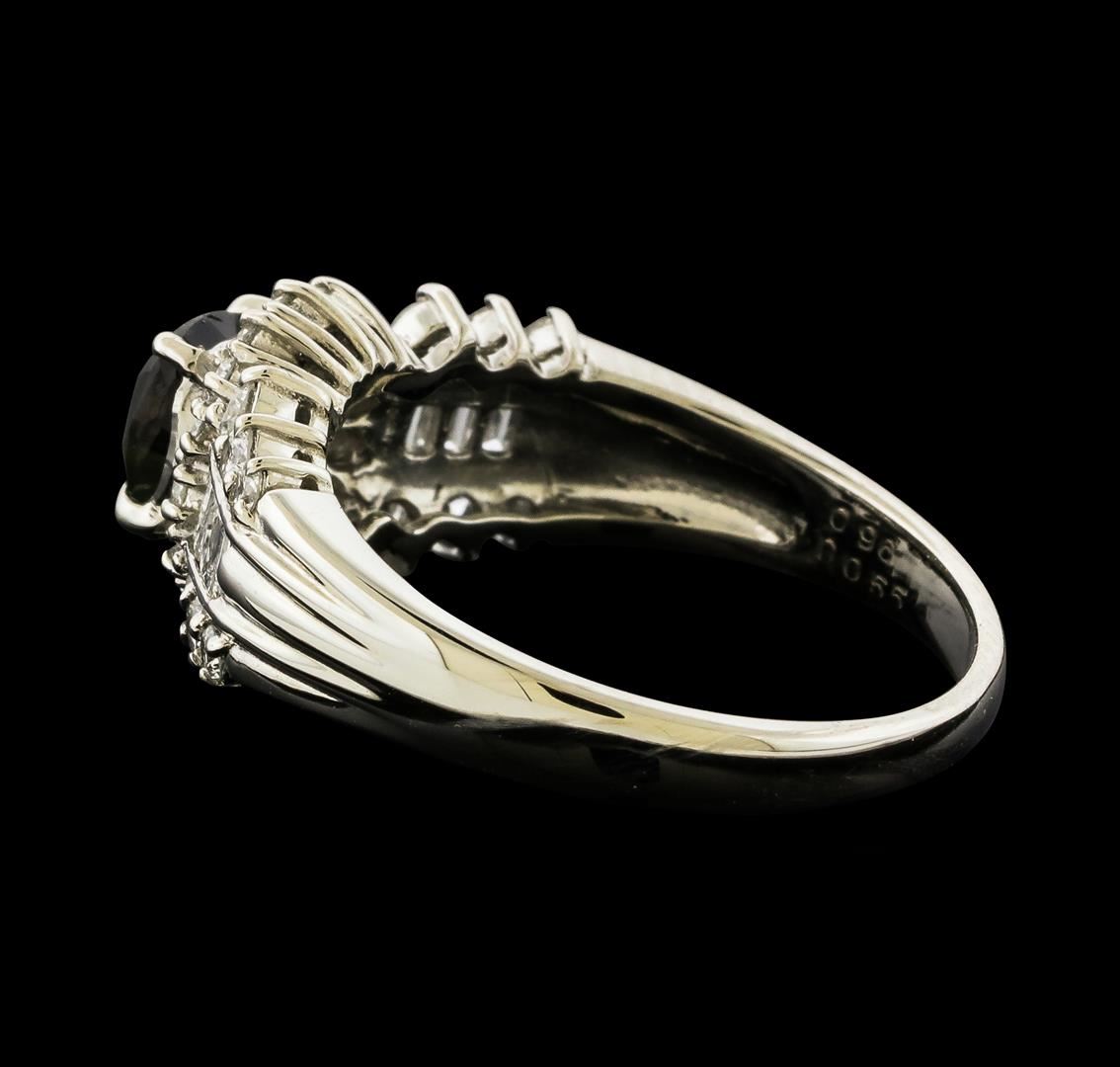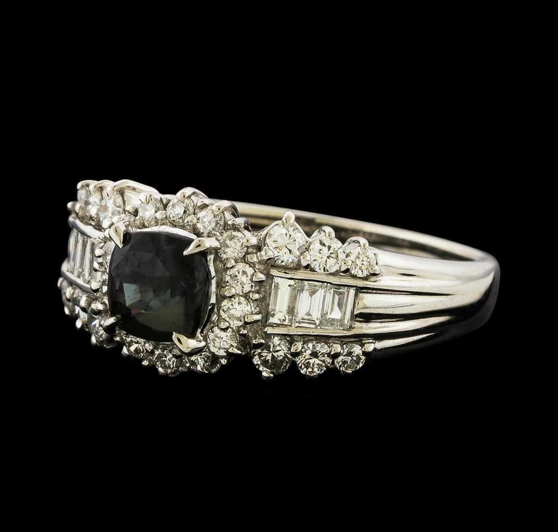 One ring featuring: Platinum containing Alexandrite with a total weight of 0.96ct and Diamonds with a total weight of 0.55ct. Total Weight of Ring: 5.9 grams.