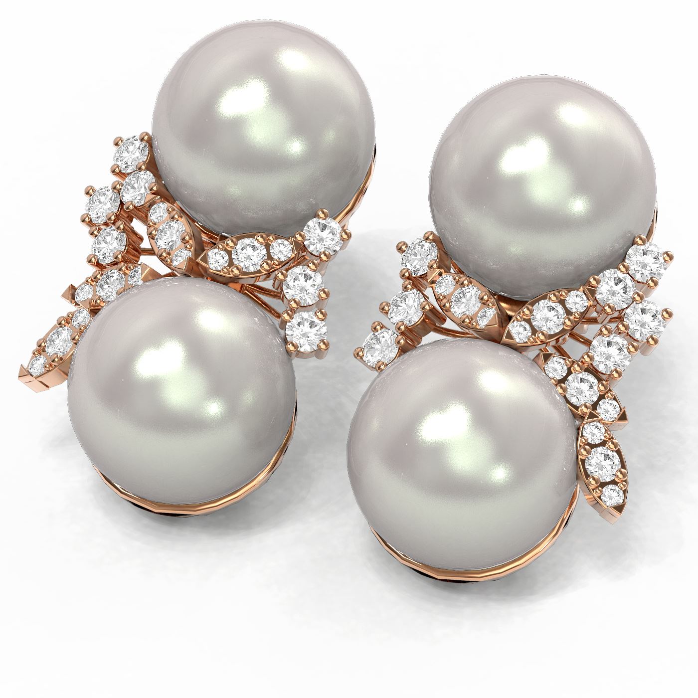 REF-124N5F - SKU: 61116 ---- 0.96 ctw Diamond & Pearl Earrings 18K Rose Gold