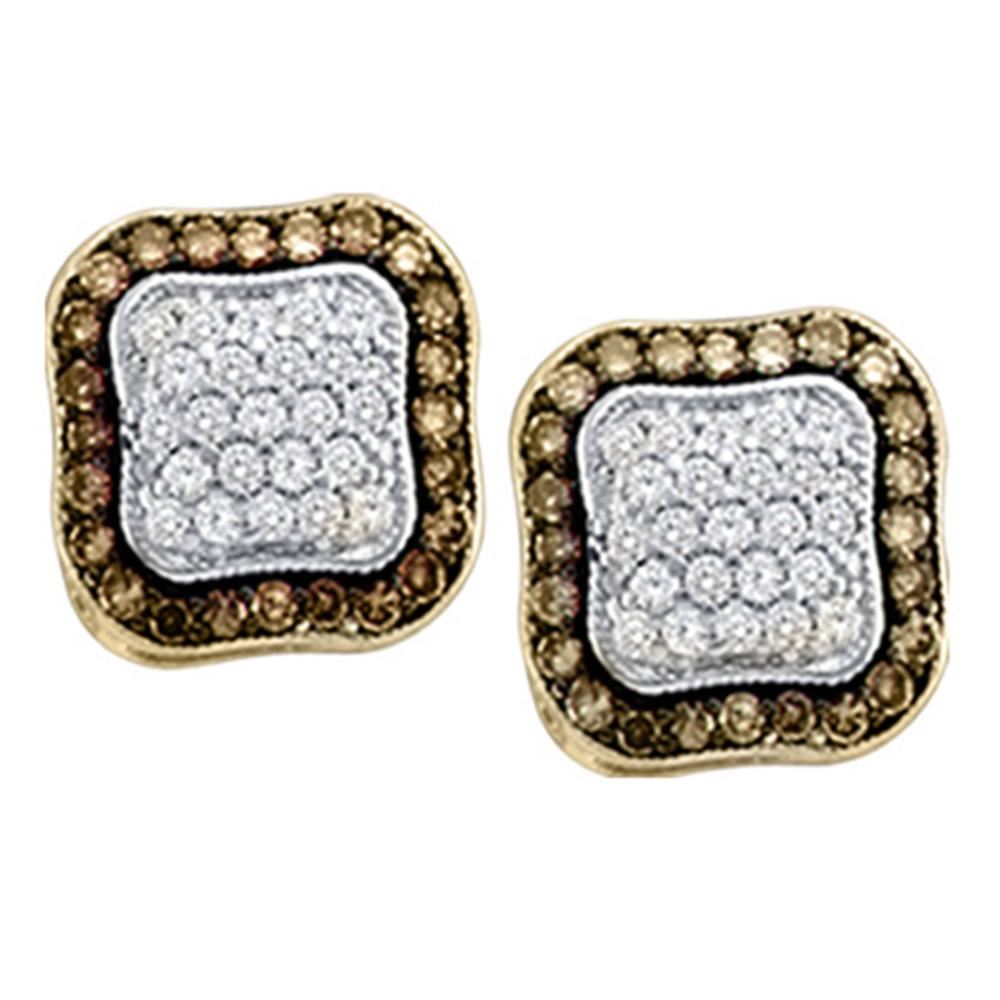 REF-37H5M- SKU: GD58877 ---- 0.97 CTW Cognac-brown Color Diamond Square Cluster Earrings 10KT Yellow Gold