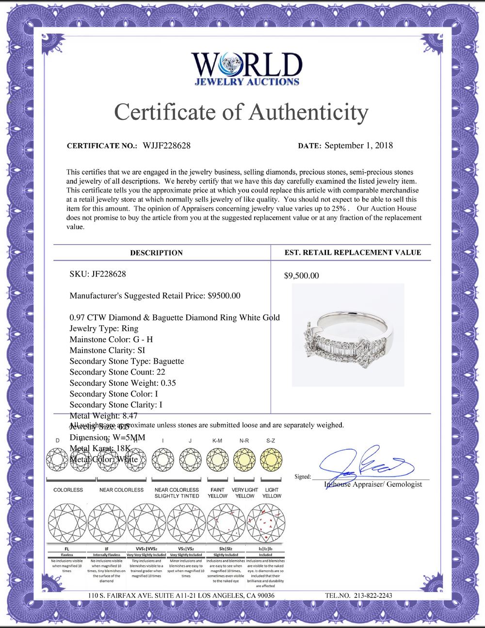 REF-126N5Y - JF228628 ---- 0.97 CTW White Round Diamond & Baguette Ring 18K White Gold