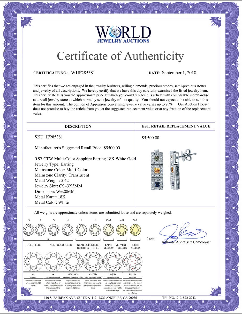 REF-71W5H - JF285381 ---- 0.97 CTW Multi-Color Sapphire & White Round Diamond Earring 18K White Gold