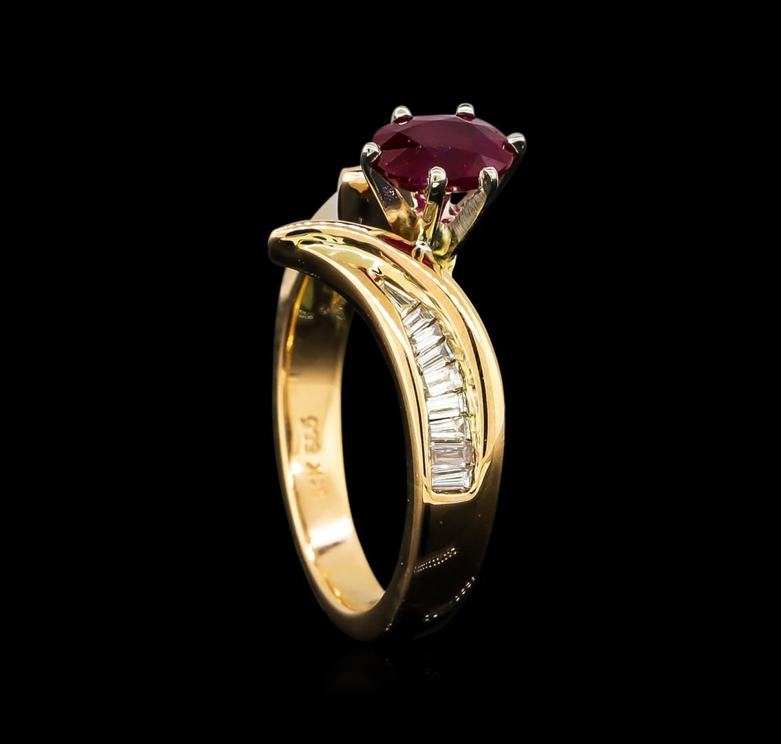 One ring featuring: 14KT rose gold weighing 5.01 grams containing one ruby with a total weight of 0.97ct and side diamonds with a total weight of 0.25ct.