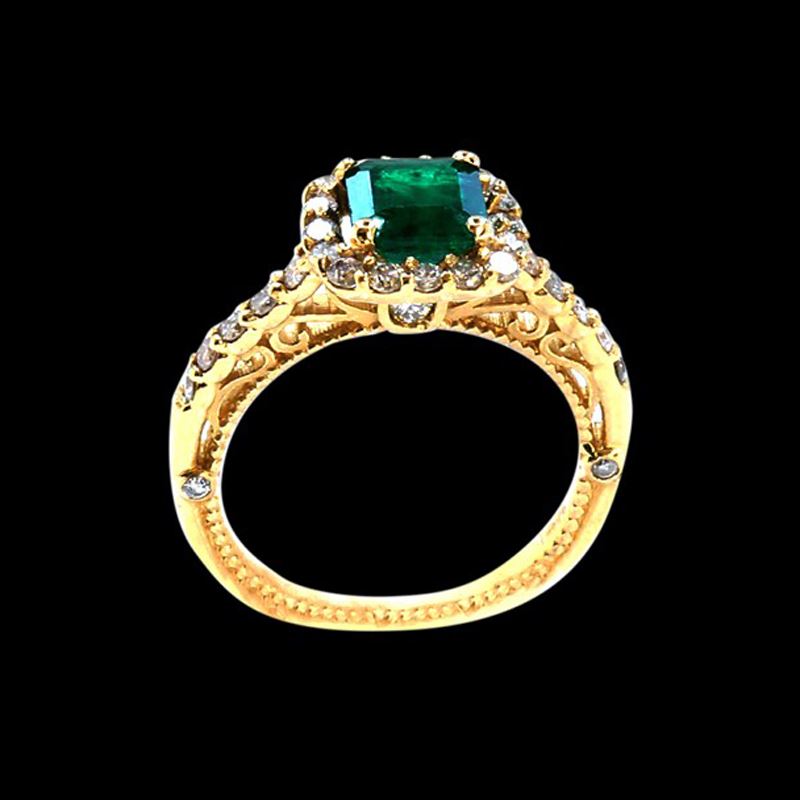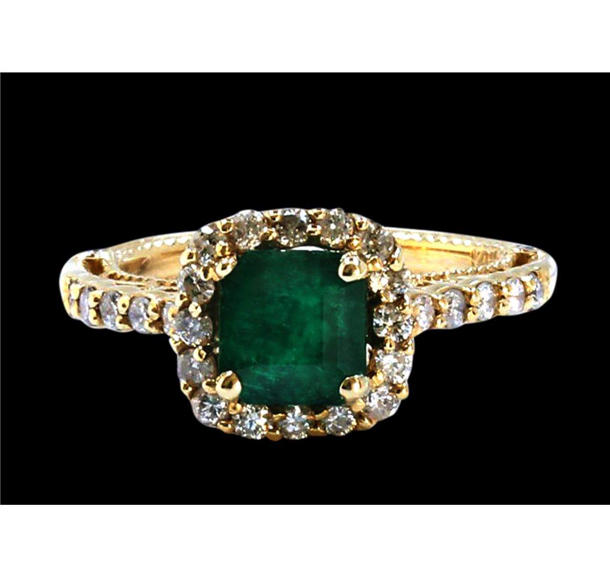 14K Y/G NATURAL COLUMBIAN EMERALD RING :3.39GR /DIAMOND:0.34CT /EMERALD: 0.97CT/#GVR1380