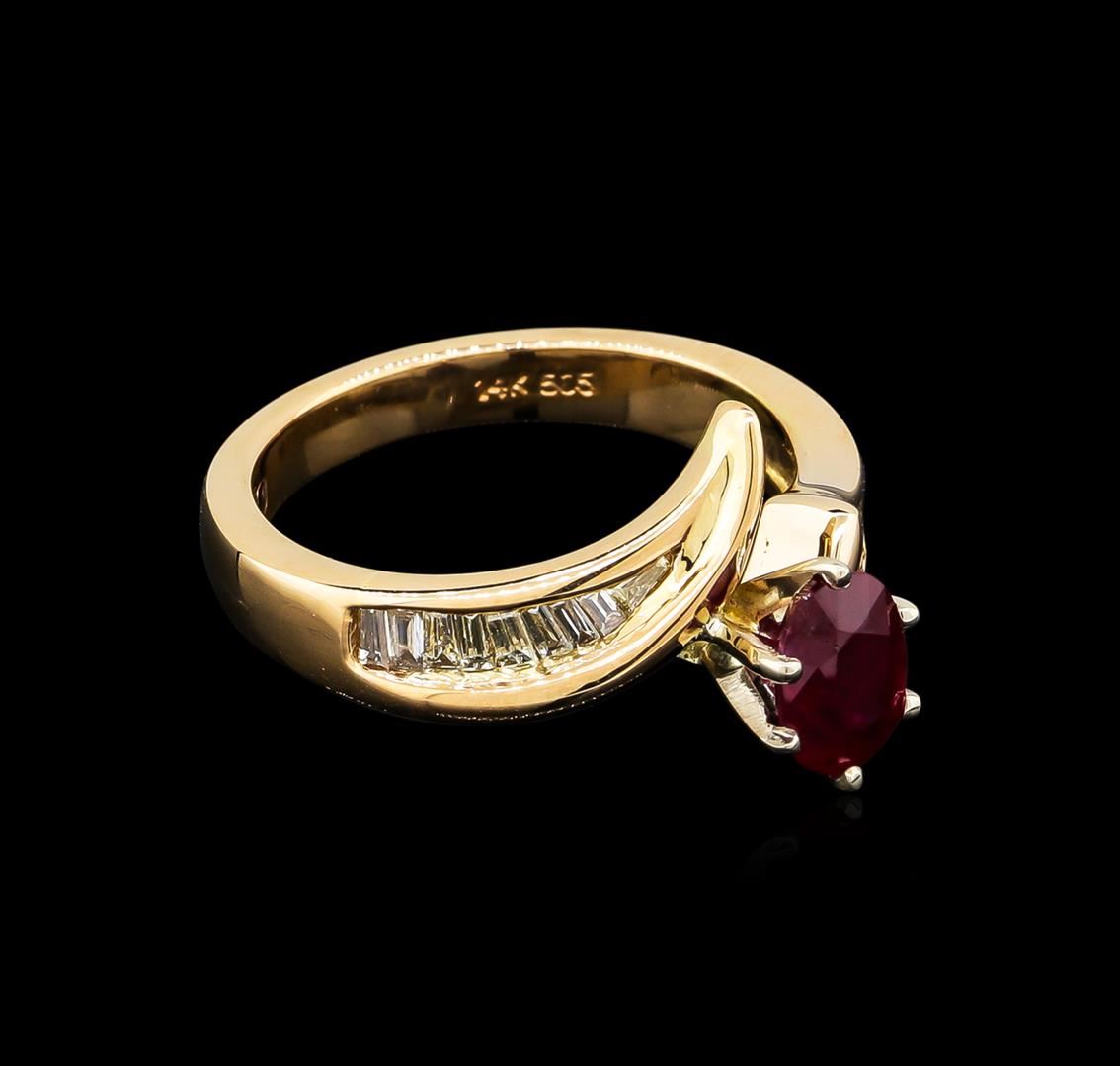 One ring featuring: 14KT rose gold weighing 5.01 grams containing one ruby with a total weight of 0.97ct and side diamonds with a total weight of 0.25ct.
