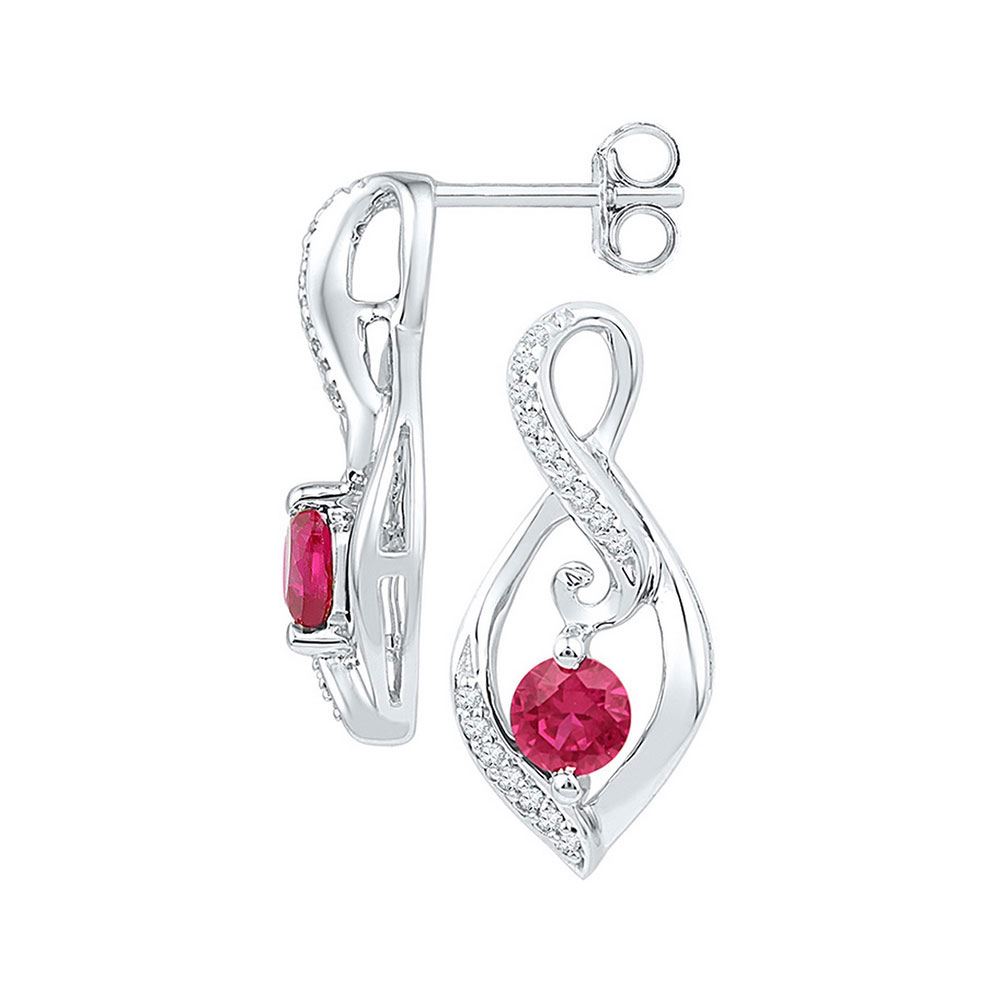 REF-19Y4X- SKU: GD101028 ---- 0.98 CTW Created Ruby Solitaire Oval Diamond Earrings 10KT White Gold