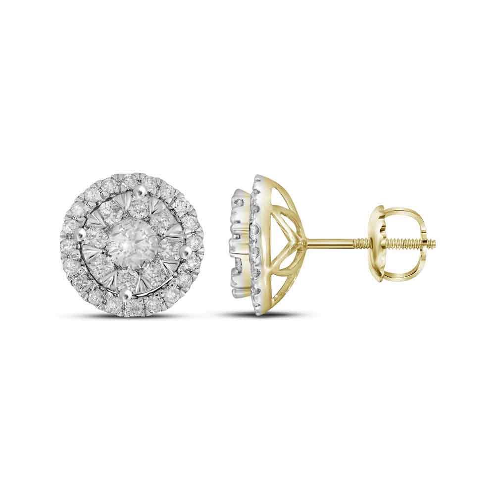 REF-112N5F- SKU: GD104787 ---- 0.98 CTW Diamond Circle Cluster Earrings 14KT Yellow Gold