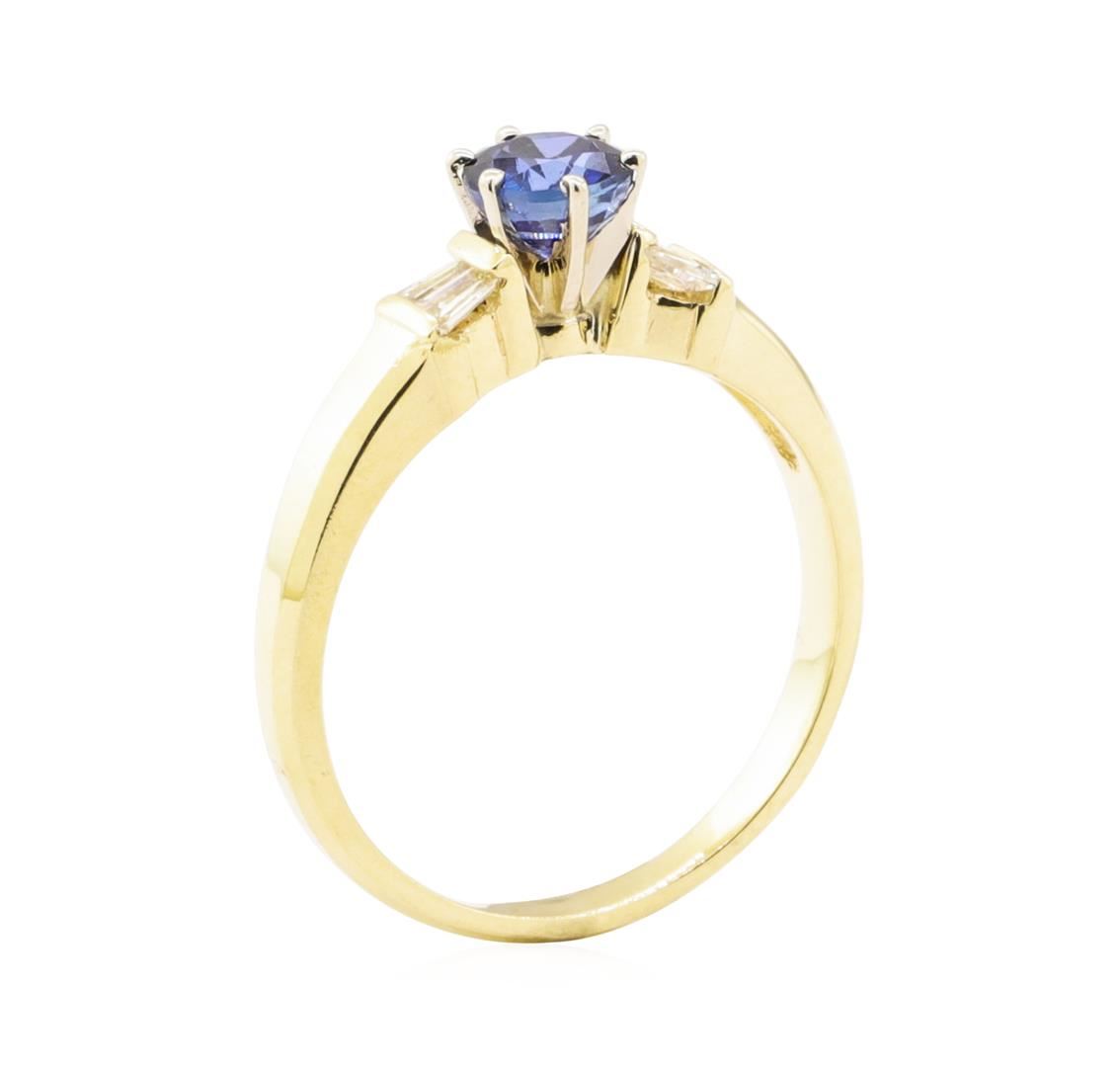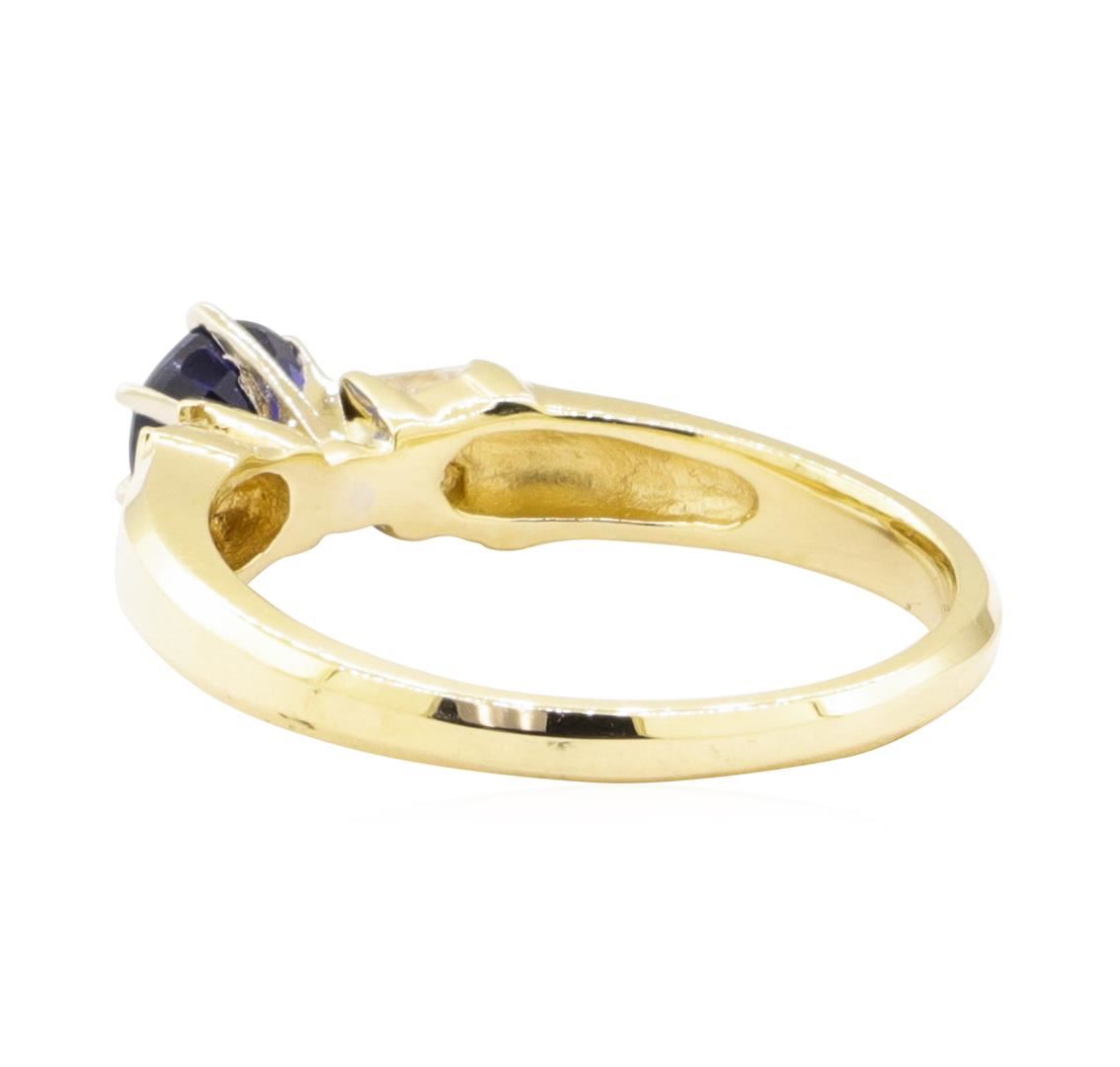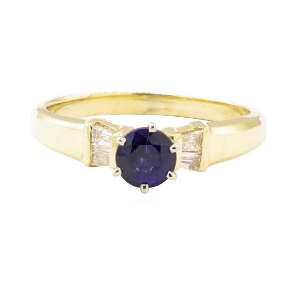 One ring featuring: 14KT yellow gold weighing 2.6 grams containing one sapphire weighing 0.73ct and diamonds weighing 0.25ctw.