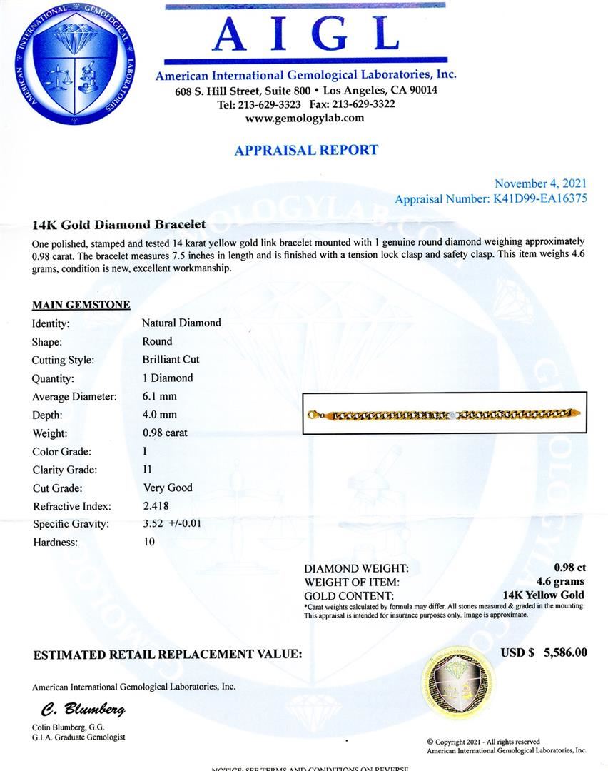 0.98ct Diamond 14K Yellow Gold Chain Bracelet. Please see Photos and Description for all available information. This is a stylish and gorgeous diamond chain bracelet, highlighted with a small diamond on the chain, which is very elegant and charming. It is made of high quality material and delicate workmanship, which is very durable for daily wearing. It is a perfect gift for your friends and family members.