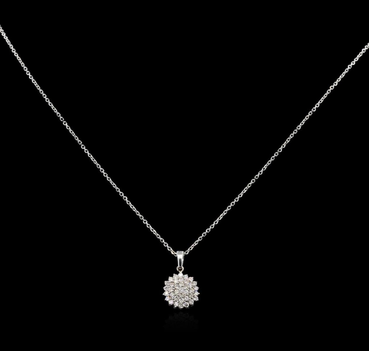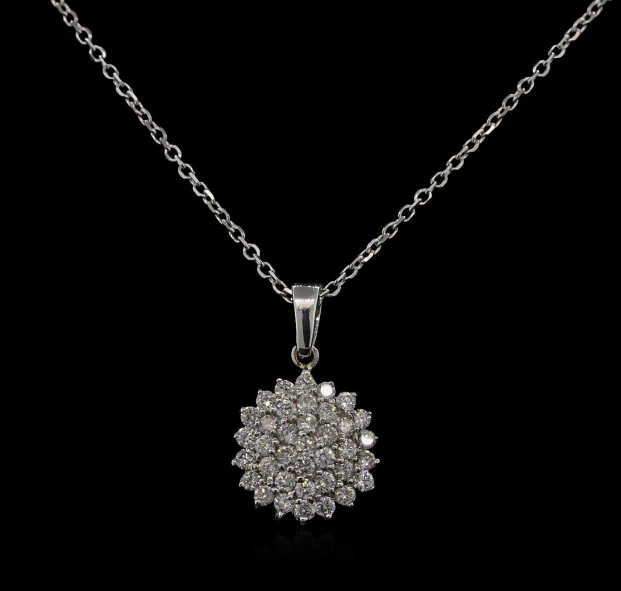 One pendant with chain featuring: 14KT white gold weighing 2.45 grams containing 37 diamonds with a total weight of 0.98ct.