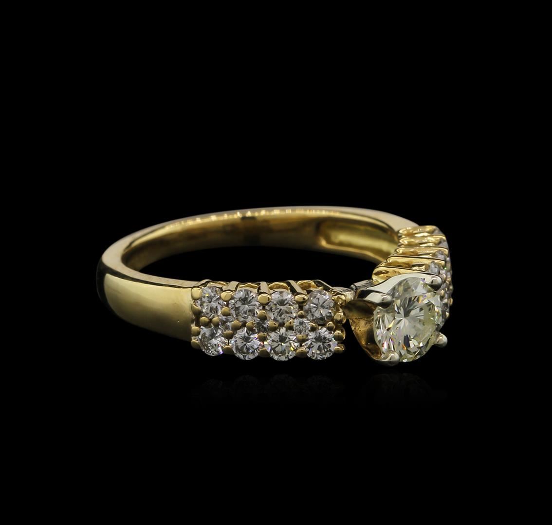 One ring featuring: 18KT yellow gold weighing 4.10 grams containing one prong set round diamond center stone with a total weight of 0.48ct and prong set round diamonds with a total weight of 0.50ct.