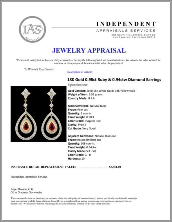 Regarding Appraised Jewelry and Loose Stones - Auctionfarm sends them out to a third party for Retail Replacement Value Appraisals, which are the most common. These types of evaluations are written for insurance needs. This would be the cost to replace the jewelry with an item of equal quality and kind, considered to be the current market price or the replacement value. This type of appraisal is done to protect you in the event of damage or loss of a valuable item. Our appraisals are conducted by independent 3rd Party appraisal firms that utilizes Certified GIA Gemologist. Appraisals should be used for verification of gemstone and/or metal weight, size, and grade only, not actual value. Appraisal value should be considered for insurance purposes only, not actual value, as price varies greatly from retail locations thru out the world. Items should not be purchased with the expectation to resell for appraisal price, or for profit.