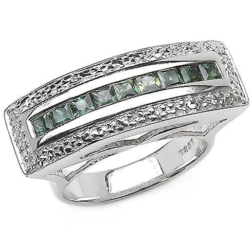 0.99 CARAT GENUINE GREEN SAPPHIRE .925 STERLING SILVER RING - METAL INFORMATION: .925 STERLING SILVER WEIGHT: 9.96GMS ITEM: RING TOTAL CTW: 0.99CTW FINISH: HIGH SILVERPOLISH STONE INFORMATION: SAPPHIRE GREEN QUANTITY: 9 SHAPE / SIZE: SQUARE/2.50MM