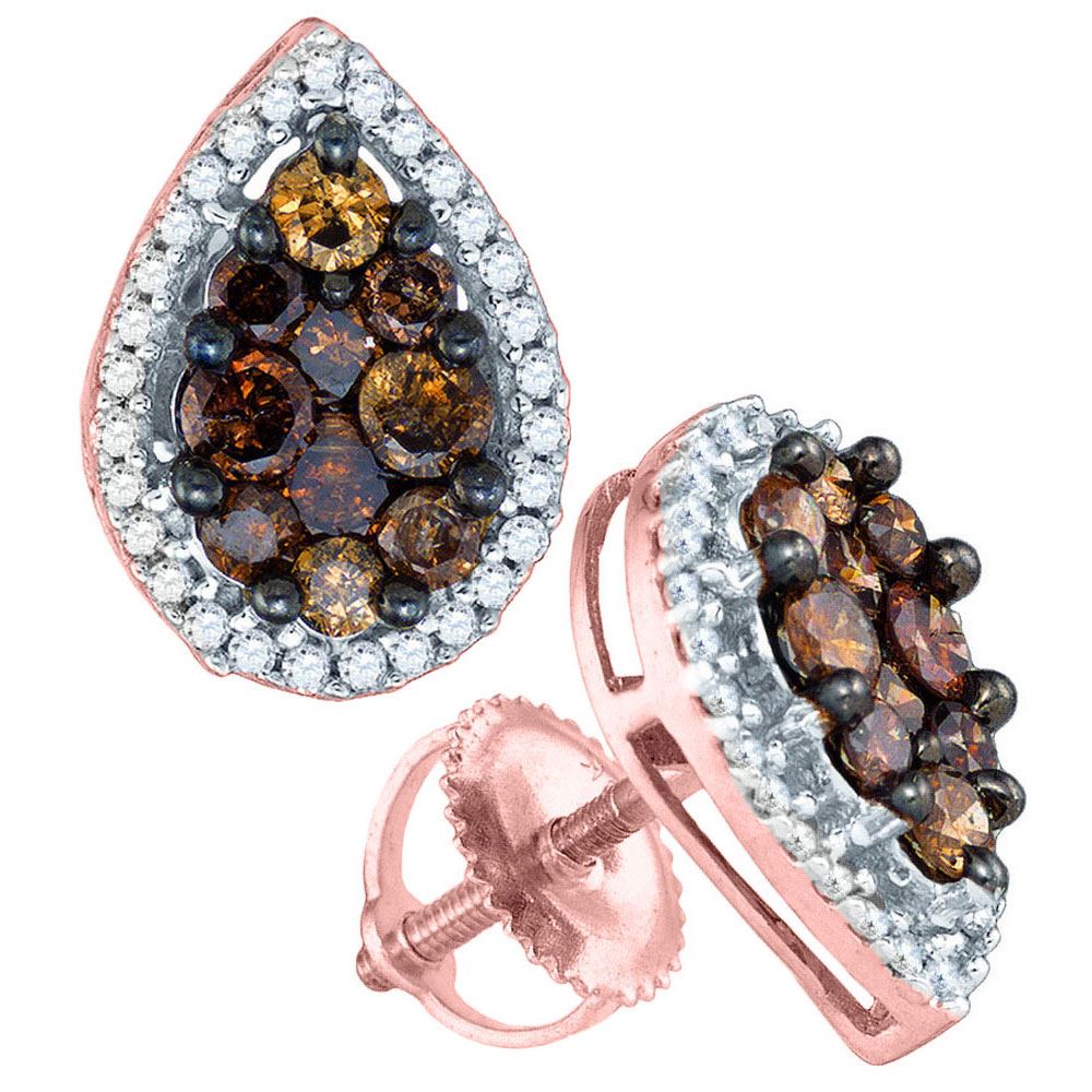 REF-41H9M- SKU: GD90235 ---- 0.99 CTW Brown Color Diamond Teardrop Cluster Earrings 10KT Rose Gold