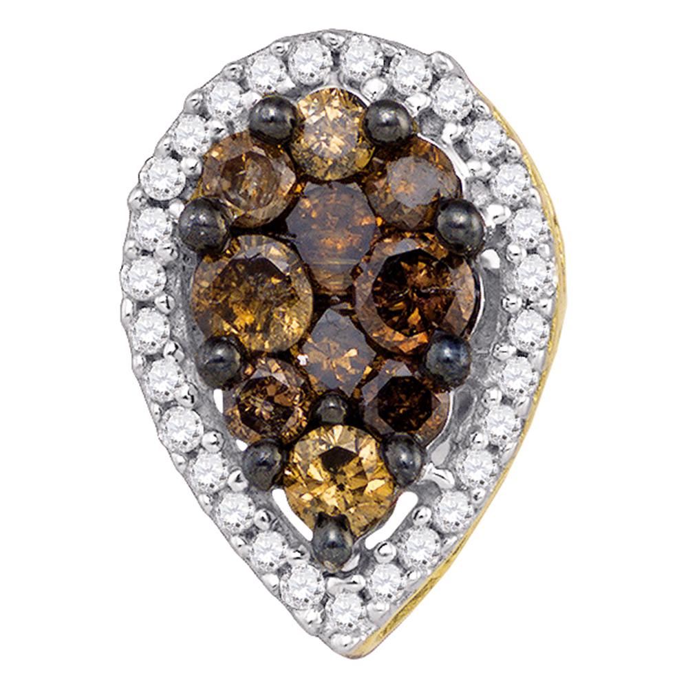 REF-41N9F- SKU: GD77578 ---- 0.99 CTW Brown Color Diamond Teardrop Cluster Earrings 10KT Yellow Gold
