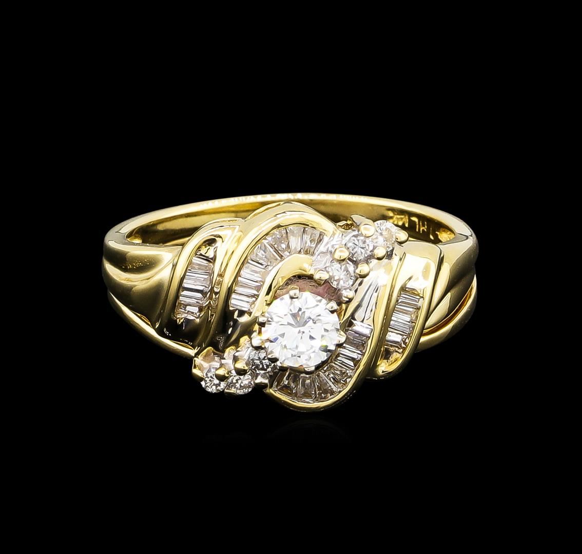 One ring featuring: 14KT yellow gold weighing 4.60 grams containing one center diamond with a total weight of 0.24ct and side diamonds with a total weight of 0.75ct.