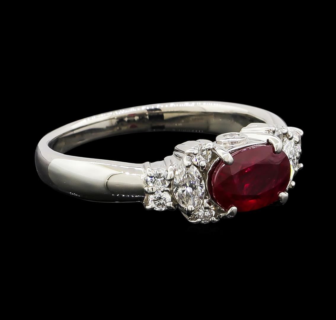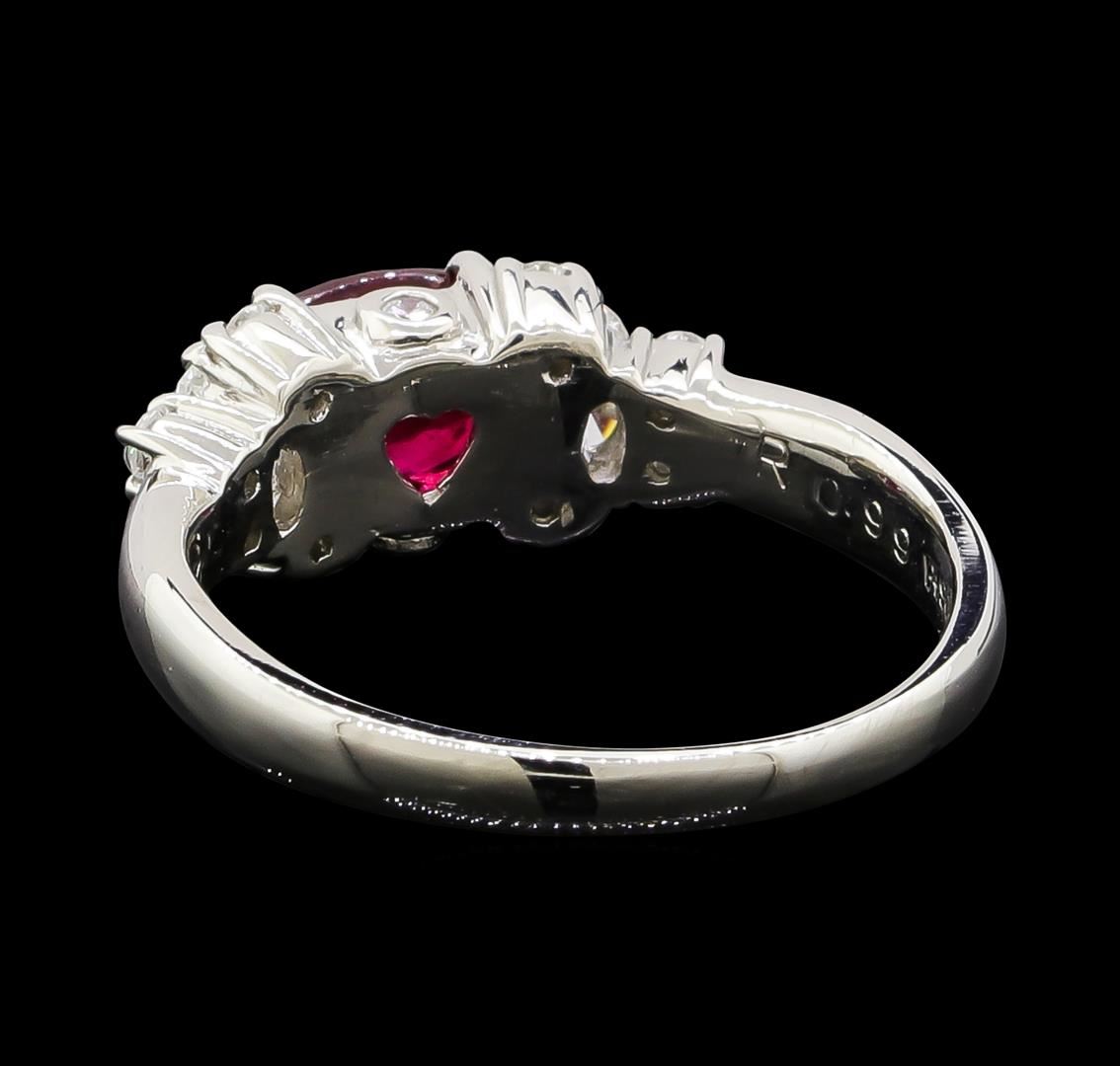 One ring featuring: Platinum containing Ruby with a total weight of 0.99ct and Diamonds with a total weight of 0.38ct. Total Weight of Ring: 5.2 grams.