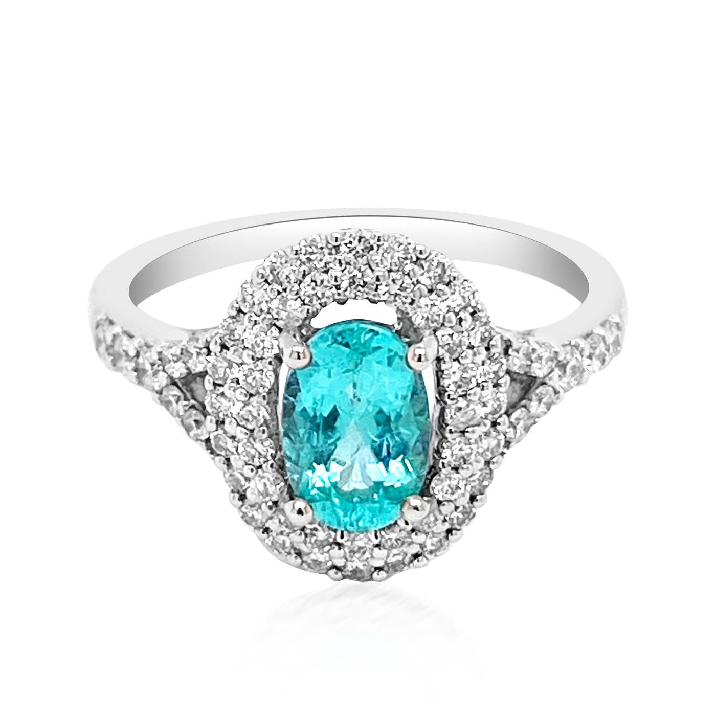 0.99ct Natural PARAIBA TOURMALINE 14K White Gold 3.42gm Diamond 0.54ct Ring #PJ9070