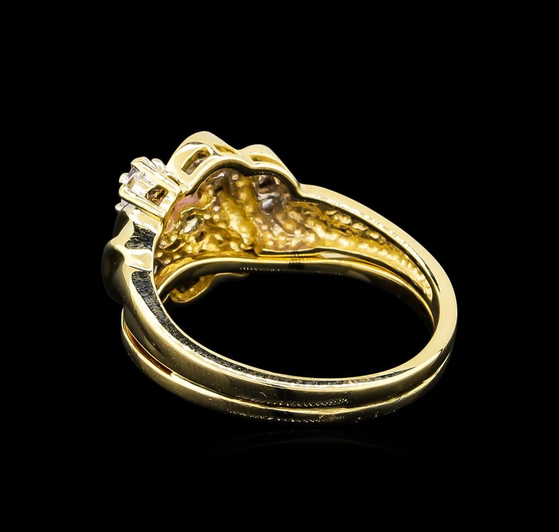 One ring featuring: 14KT yellow gold weighing 4.60 grams containing one center diamond with a total weight of 0.24ct and side diamonds with a total weight of 0.75ct.