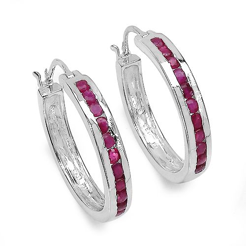 0.99ctw Genuine Ruby .925 Sterling Silver Earrings - Contains 22 round cut Ruby, each measuring 1.90mm. Earrings weigh 4.57gms.