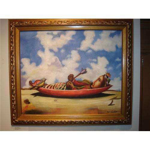 You are interested in an original oil painting by artist Nick Lindson. This piece measures 20" x 24" unframed and 28"x 32" framed. This piece does come framed.
