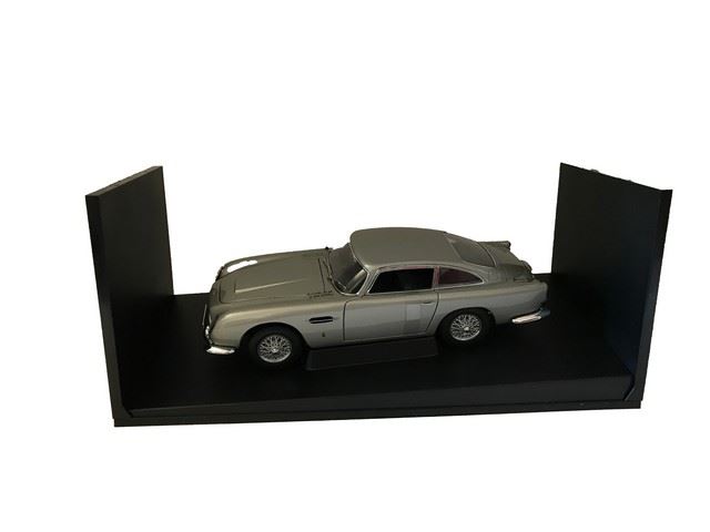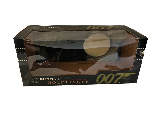 007 Goldfinger James Bond Collection Aston Martin DB 5, die cast metal with plastic parts, collectible car from Auto Art and Gateway Global LTD. New in window box. Great condition. Window plastic has a few dents on the folded corner. Removed from box only to take the photograph.(14"x6"x6")